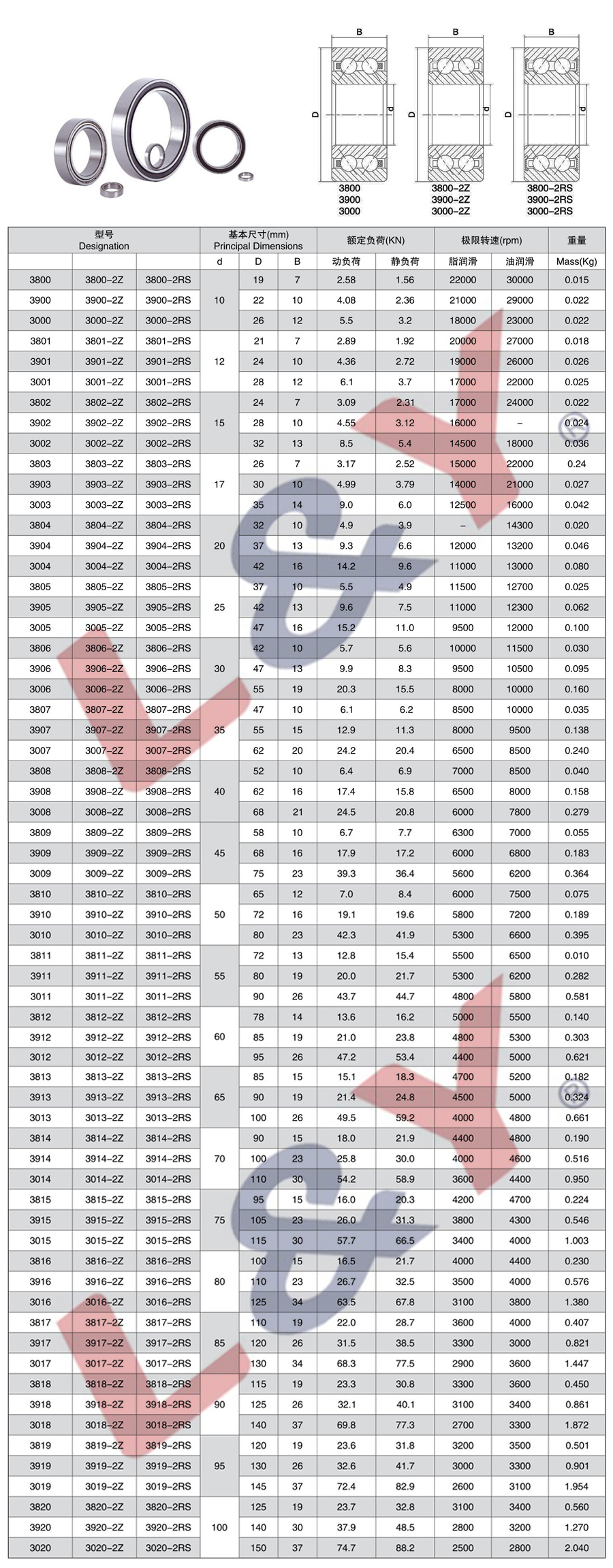 Name:Thin-wall nylon cage double row angular contact ball bearings (38, 39, 30 series)