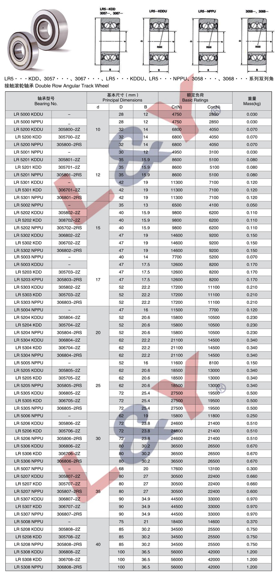 應(yīng)用: 與單列軸承相比雙列角接觸球軸承具有更好的剛性,能承受傾覆力矩。軸承為非分離式。特別適用于有高剛性要求的應(yīng)用場合。廣泛用于小汽車的前輪輪轂中(有的車型也用同尺寸的雙列圓錐滾子軸承)。